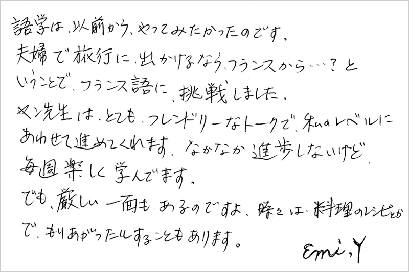 1対1でしっかり学べるプライベートレッスンです。 初めてフランス語を習う方から、フランスに留学・転勤する方まで あなたのレベルに合わせて、じっくりと学べるさまざまなコースをご用意しています。