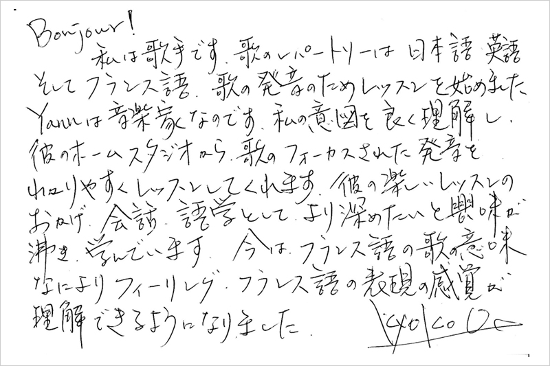 レッスンを受けた方の声をご覧ください